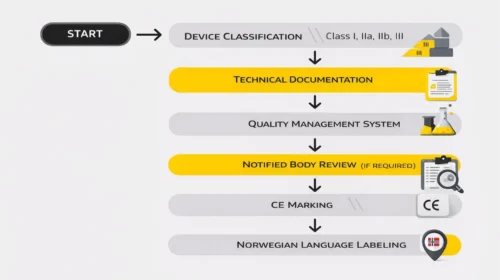 Yes, medical device manufacturers must complete product registration before placing devices in the Norwegian market. Devices must comply with EU MDR requirements, including proper documentation and conformity assessment. Registration typically involves submitting product details through EUDAMED or local regulatory channels. Compliance ensures the device meets safety, performance, and quality standards.